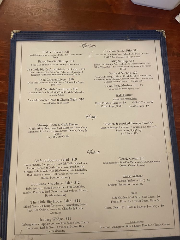 Introducing "The Little Big Cup," a charming Cajun/Creole restaurant in Arnaudville, LA. This hidden gem offers a cozy and classy dining experience with excellent customer service. The menu caters to various preferences, including brunch, lunch, dinner, and dessert options. With a focus on fresh ingredients and delicious flavors, dishes like steak with signature sauces are highly recommended by patrons. The restaurant's picturesque location along the bayou adds to the overall ambience, making it a perfect spot for a relaxing meal. In addition to the mouthwatering cuisine, the Little Big Cup provides amenities such as outdoor seating, free Wi-Fi, and gender-neutral restrooms. Whether you're looking for a casual meal or planning a special event, this restaurant is a must-visit for food enthusiasts seeking a memorable dining experience.